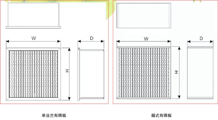 有隔板過濾器的濾料是利用專用自動設備打成皺褶的紙隔板、鋁箔隔板分隔并折疊成型,可以根據客戶的要求提供多種材質及多種尺寸的外框。