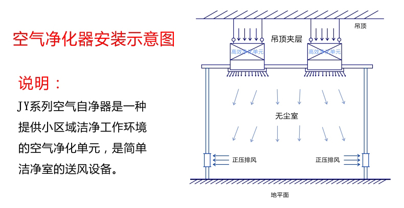 JY移動式自凈器是一種提供局部潔凈工作環境的空氣凈化設備,由初效空氣過濾器、風機、高效空氣過濾器及箱體組成。外殼采用冷軋鋼板制作,表面烤漆處理,結構簡單、使用方便、安裝后可進行室內空氣循環,適用于10000~100000級較低潔凈度環境且工作位置經常變換的場合使用。