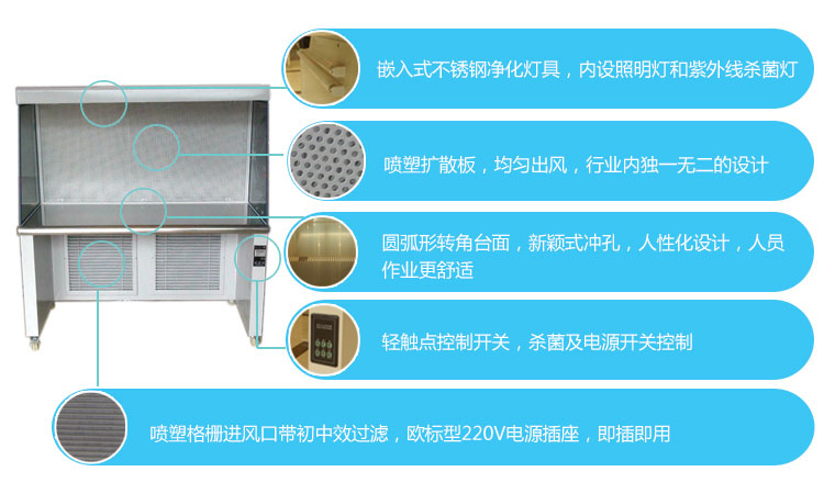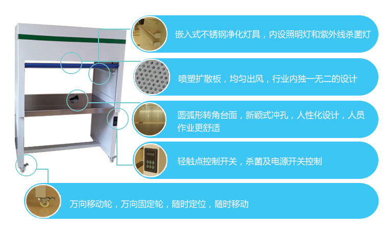 | 材質 | 箱體1.2mm軋鋼板烤漆,臺面SUS304 1.2mm厚度不銹鋼(可訂做全不銹鋼超凈臺) | ||||